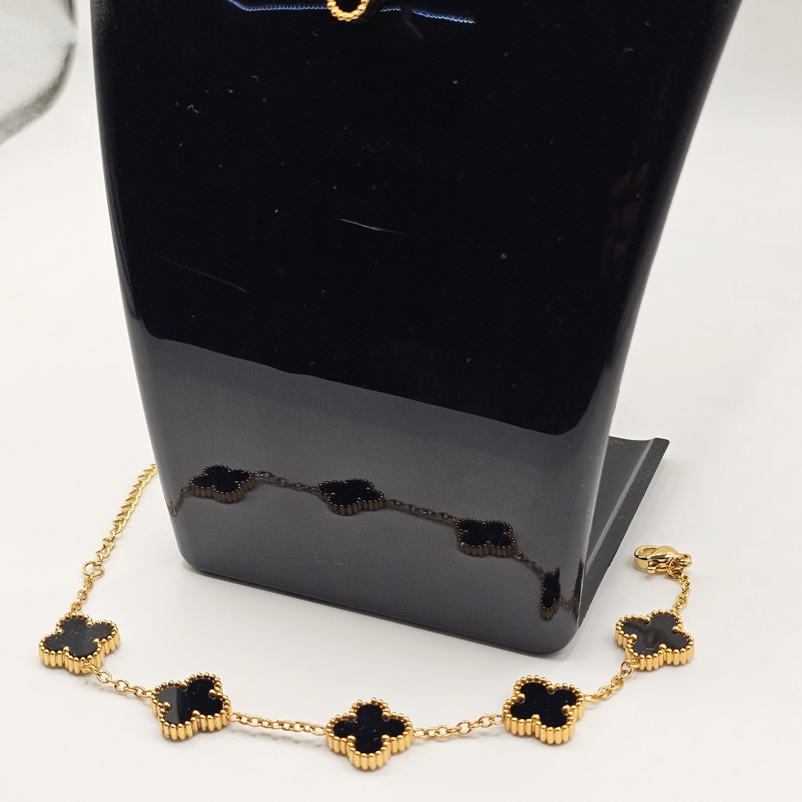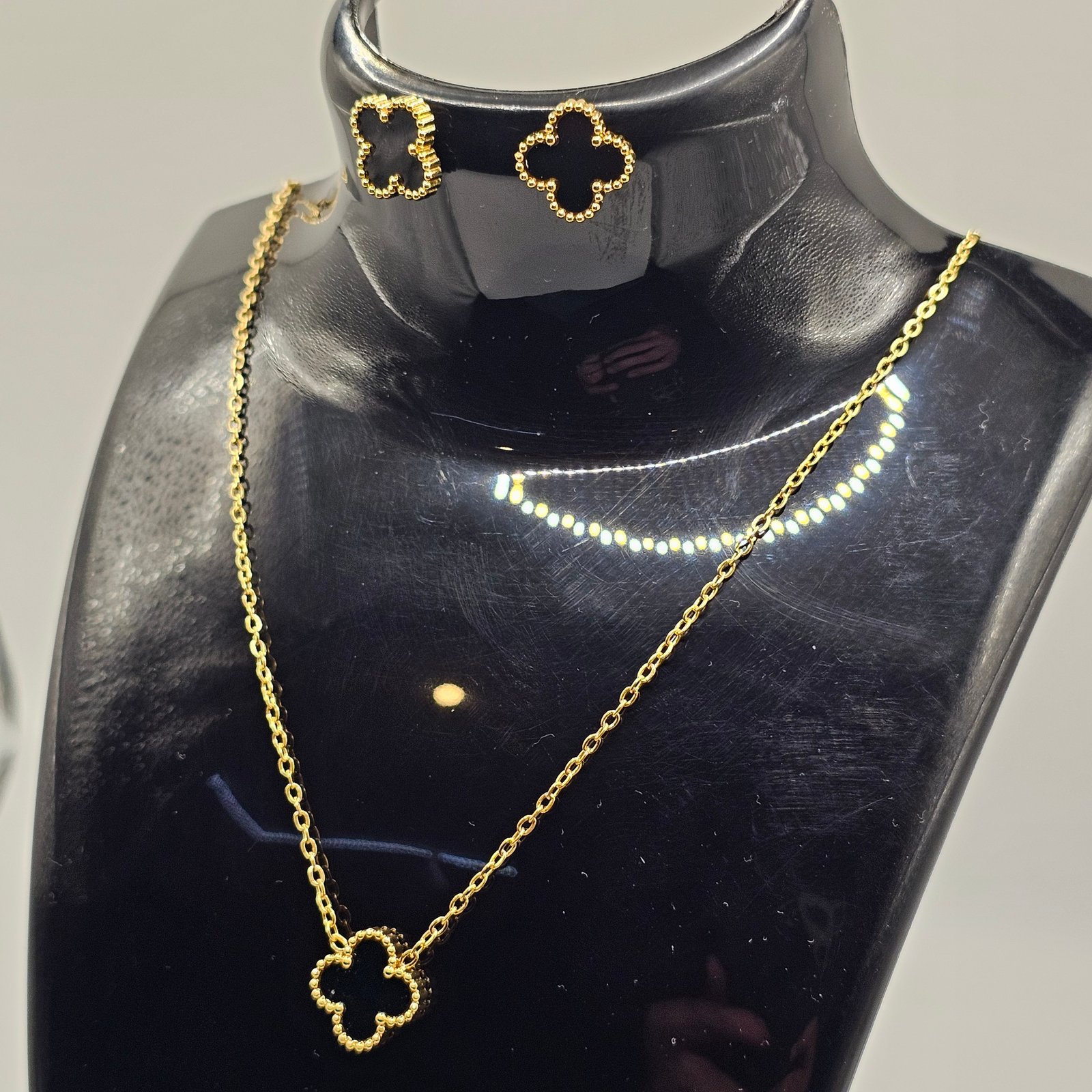 Conjunto de aretes, collar y pulsera tipo Van Cleef, acero inoxidable